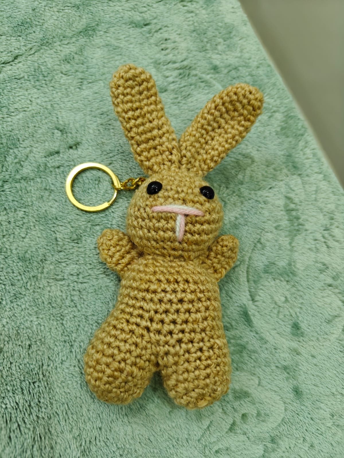 A handcrafted crochet bunny keychain made using soft premium yarn and detailed with secure safety eyes and minimal stitched features. Designed in a compact amigurumi style, this bunny charm is lightweight, durable, and suitable for everyday use.