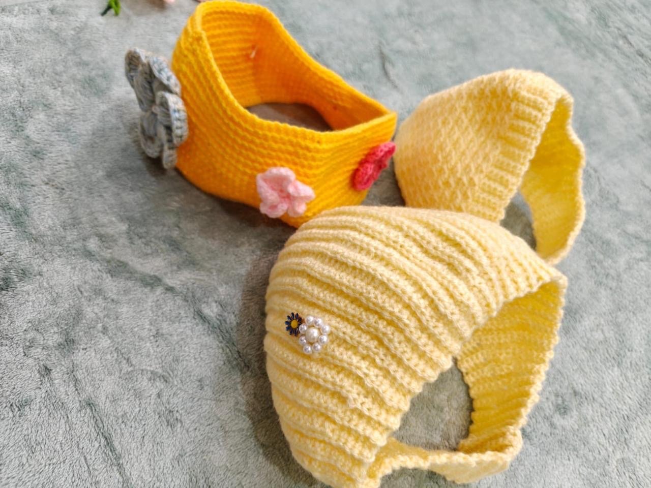 Handmade Crochet Yellow Bow Hairband – Medium and small combo