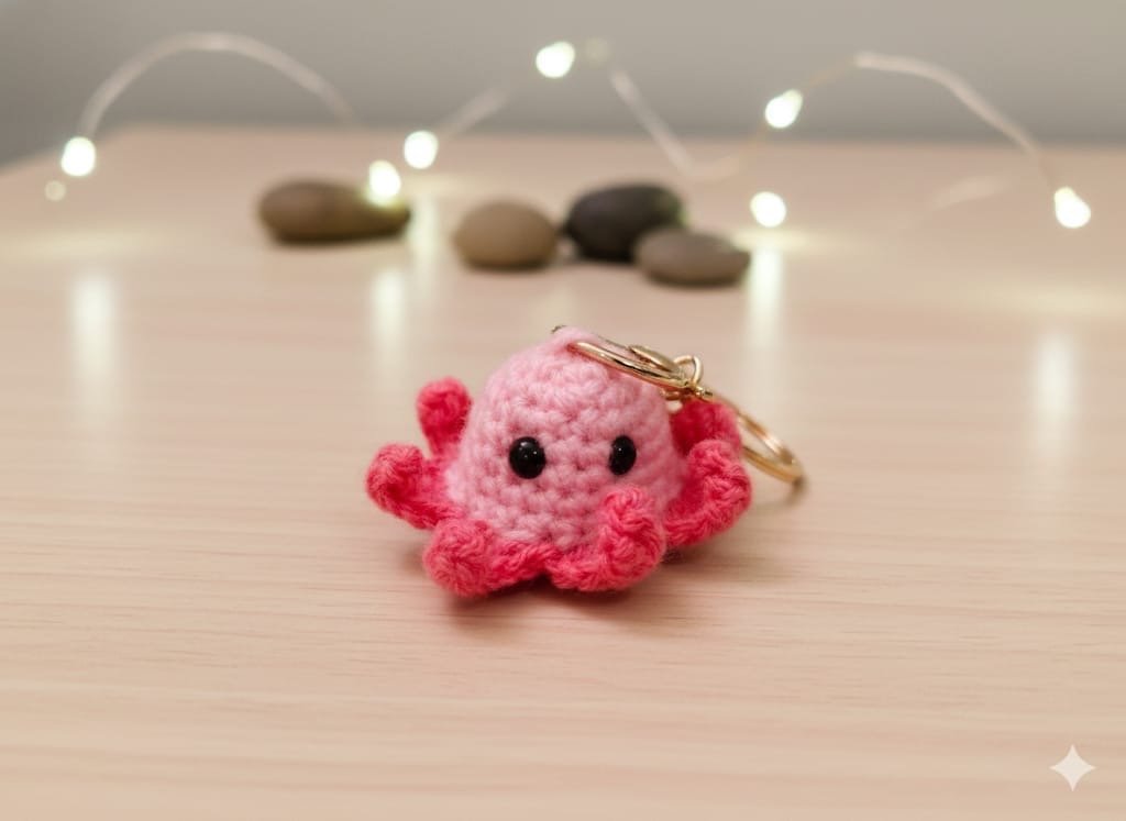 Handmade Crochet Octopus Keychain – Pink, Yellow & Blue