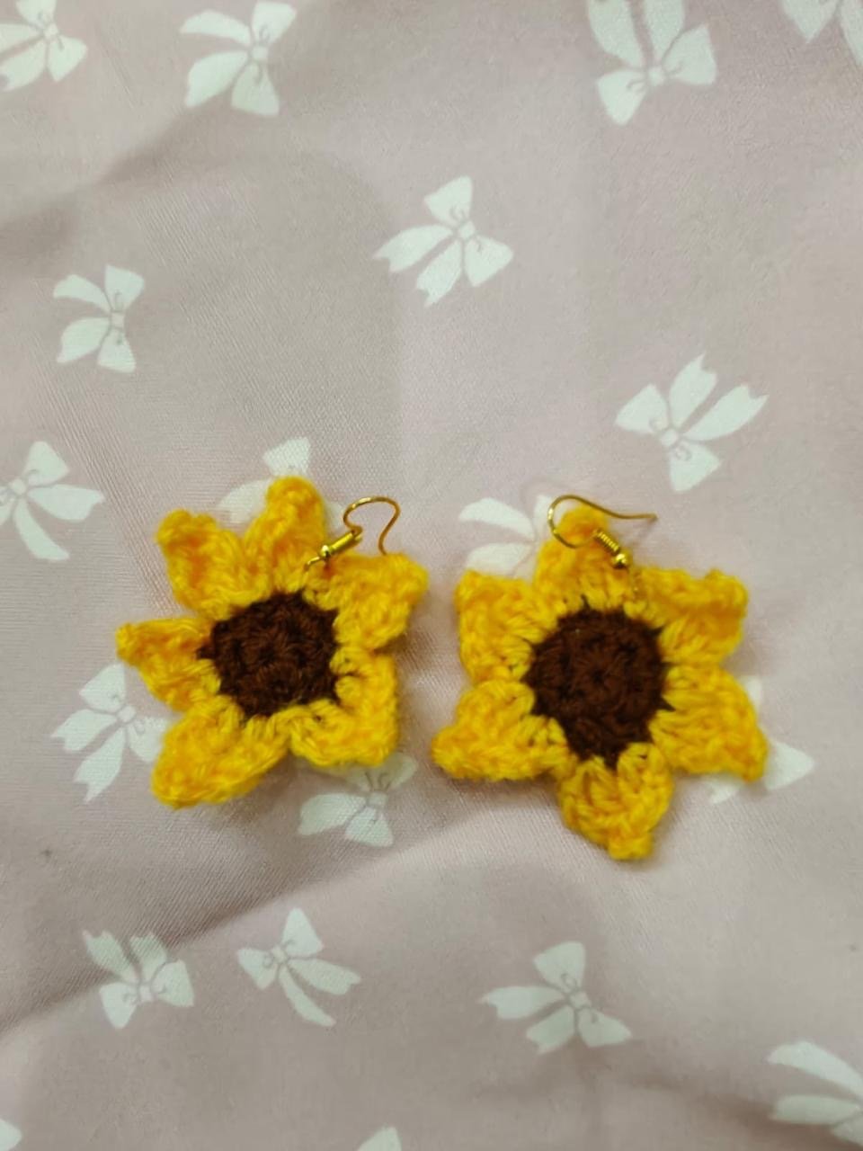 Title: Handmade Crochet Sunflower Earrings β Boho Floral Statement